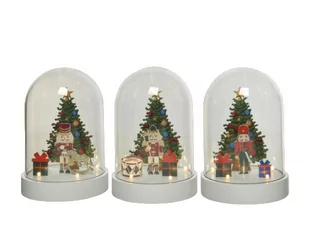 Klosz LED z choinką Dziadek do orzechów stojący pod choinka z prezentami, to wspaniała świąteczna dekoracja, która zachwyci każdego. Światło rozświetla postać pod kloszem, który rozprasza światło na zewnątrz, tworząc spektakularny efekt. Każda figurka posiada 1 punkt świetlny, który zapewnia rozświetlenie figurki. Produkt zasilany na baterię 2xAA Informację, który wzór Państwo wybrali, prosimy pozostawić w formularzu zamówienia. Ilość sztuk w opakowaniu: