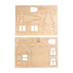 Rayher Nisse drzwi skrzata, drewno z certyfikatem FSC, 2 płyty drewniane 21 x 15 cm, 26-częściowy, motywy do wyrywania, dekoracja drewniana do malowania, 64518505