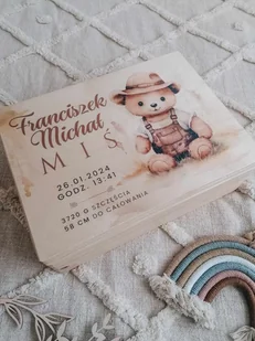 MIŚ W KAPELUSZU Drewniane dekoracje kuferek pojemnik na zabawki