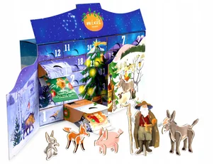 banan & truskawka, truskawka Crunchy corn: słony, pomidor & bazylia Mixies – naturalne owocowe żelki Crème boule (ajerkoniak, cynamon & czekolada) Płatki kakaowe Peep Peep Chrupiący ser – irlandzki cheddar Mikołajkowa i anielska niespodzianka . . . i wiele więcej! Wymiary kalendarza: 50 x 28 x 10 cm – duży, efektowny, gotowy do wręczenia jako prezent!