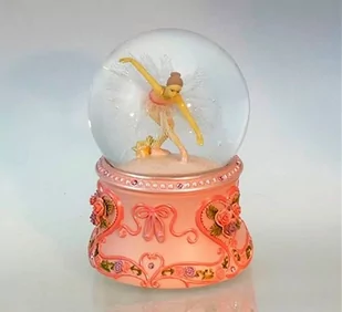 MMM, kula śnieżna-pozytywka, ruchome wnętrze BALETNICA Kula z wnętrzem przedstawiającym kłaniającą się baletnicę. Podstawa/cokół wykonana z różowej żywicy syntetycznej jest misternie zdobiona ładnymi pętlami i girlandami kwiatów. . Wnętrze kuli również wykonane jest z malowanej i zdobionej masy z żywicy syntetycznej. Po nakręceniu metalowym kluczykiem, znajdującym się na spodzie pozytywki, wnętrze kuli obraca się!!! Kule marki MMM z sukcesem sprzedają się na całym Świecie, m. in. : w luksusowym domu towarowym "Harrods" w Londynie!!! Nic dziwnego.
