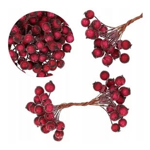 Ozdoba ŚwiątecznaMroźna jarzębina ciemna sztuczna 20szt wiązka GLZ02 Materiał:Produkt wykonany z tworzywa sztucznego. Wymiary:Wysokość gałązki: 15cmŚrednica owoców: 1,2cm Waga: 20g