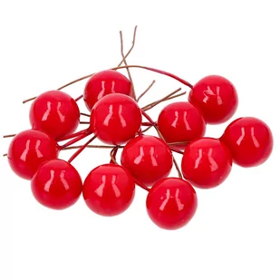 Owoce pik, czerwone pakowane po 12 sztuk. Średnica kuleczki to 1,5 cm. Drucik - 5cm. Dzięki elastycznemu drucikowi sprawdzą się przy ozdabianiu wianków, dekoracji świątecznych i wielu innych. Kuleczki posłużą również jako dekoracja na choinkę.