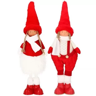 Para laleczek świątecznych w czerwonym przebraniu to oryginalne figurki marki Springos, które urozmaicą Twój bożonarodzeniowy wystrój wnętrza. Możesz postawić je pod choinką, na kominku czy parapecie okiennym jako towarzyszy skrzata lub renifera świątecznego. Dziewczynki mają rumiane twarze i niebieskie oczy. Ubrane zostały w czerwony sweterek, biała spódniczkę i spodnie na szelkach oraz buciki. Uwagę przykuwają oryginalne, wysokie czapeczki, w których został umieszczony cienki drucik pozwalający na zmianę ułożenia czapek w zależności od swoich preferencji. Figurki zostały wykonane z miękkiego, przyjemnego w dotyku materiału przypominającego polar i wełnę. Buty każdej dziewczynki są połączone, tworząc stabilną podstawę. Ta wyjątkowa dekoracja zachwyci wszystkich swoim wyglądem i sprawi, że twoje wnętrze nabierze świątecznego charakteru.