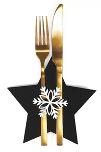 Pokrowiec Świąteczny na Sztućce z motywem gwiazdy czarne 6szt.