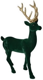 Figurka renifera w kolorze zielonym. Idealna jako ozdoba salonu oraz przedpokoju. Materiał: welur Wymiary: 32x10x45 cm