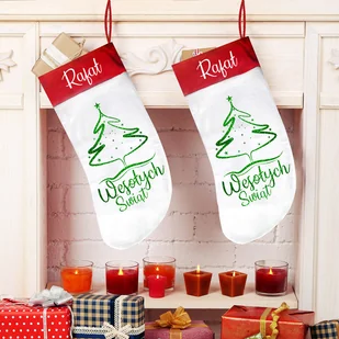 SKARPETA na prezenty dekoracja na kominek zielony brokat