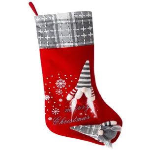 Eurofirany Ozdoba świąteczna 25x50 109 Skrzat czerwona szara skarpeta but śnieżynki New