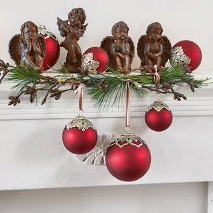 Matowe i błyszczące szklane bombki z delikatnymi żelaznymi zdobieniami. Zestaw ozdób choinkowych, dzięki któremu spełnią się wszystkie świąteczne marzenia: sześć przepięknych bombek z delikatnego szkła roztoczy swój blask w świątecznej tonacji pomiędzy gałązkami jodły. Delikatne mocowanie z ornamentem nadaje zawieszkom szczególny urok vintage. Zestaw zawiera sześć bombek w trzech różnych rozmiarach.