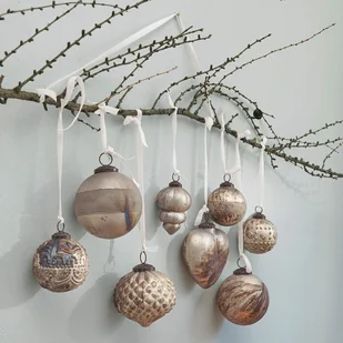 Różne kształty wykonane z dmuchanego szkła. Specjalny rodzaj wykończenia w wysokiej temperaturze tworzy wzory kolorystyczne o niepowtarzalnym charakterze. Trzy różne rozmiary w zestawie. Jeśli chcesz nadać swoim dekoracjom świątecznym nowy blask, ten ośmioczęściowy zestaw będzie doskonałym wyborem. Tymi wykonanymi z dmuchanego szkła ozdobami możesz udekorować nie tylko choinkę, ale także girlandy i wieńce.