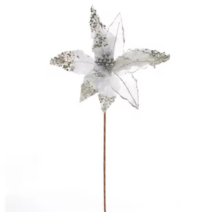 Świąteczny kwiat błyszczący srebrny, 50 x 32 cm