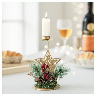 Świecznik Boże Narodzenie złoty ozdobny na stół Glamour 15 cm KSN122