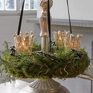 Ten zestaw emanuje niemal królewskim stylem: składa się z czterech wyjątkowych świeczników w kształcie małych koron, które mają lustrzaną powłokę wewnątrz i artystyczne zdobienia na zewnątrz. Do wszystkich czterech koron możesz włożyć świece tealight. Będą zachwycająco mienić się w blasku płomienia świecy. Ten kwartet świetnie zaprezentuje się również w Twoim wieńcu adwentowym!