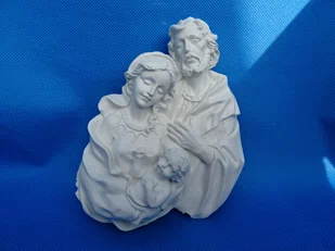 Figurka Matka Boska z Dzieciątkiem. Wymiary:17x12cm Z tyłu otwór umożliwiający powieszenie! Figurka wyknana z bardzo mocnego gipsu modelowego!