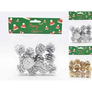 Szyszka dekoracyjna 16 x 15 cm 12 sztuk srebrny / złoty