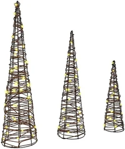 vidaXL Choinka 3 pcs Ciepła biel 20 x 20 x 80 cm rattan