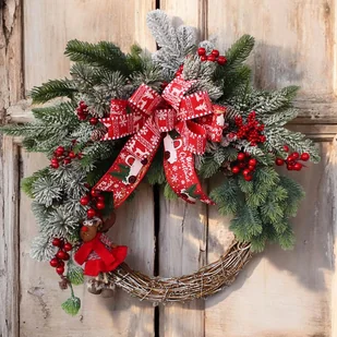 Wianek zimowy na drzwi z wysokiej jakości sztucznego igliwia. Świetny pomysł na świąteczny prezent dla bliskiej osoby. Jest to trwała ozdoba, która będzie cieszyła przez wiele lat. Wianek wykonany na rondzie ...