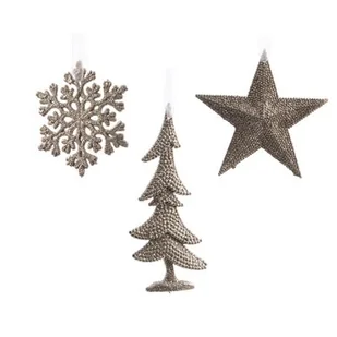 Zawieszka plastikowa brokatowa gwiazda / choinka / śnieżynka szampański