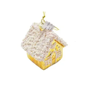 Zawieszka szklana domek 6,8 x 9 cm złoty