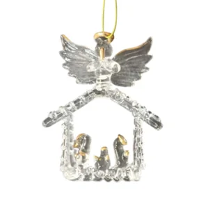 Zawieszka szklana szopka 9 cm transparentny