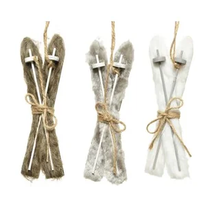 Zawieszka z futerkiem narty mix brązowy / szary / biały