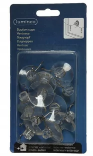 Kolor: przezroczysty Materiał wykonania: tworzywo sztuczne Ilość sztuk: 12 Zastosowanie: bezinwazyjne wieszanie lampek, kabli, ozdób