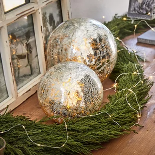 Wspaniała ozdoba nie tylko na święta: szklane srebrne kule w eleganckim antycznym stylu. Zasilane bateryjnie lampki LED rozświetlają te misterne dzieła sztuki od wewnątrz i sprawiają, że te zaczynają emanować niemalże złocistym blaskiem. Doskonale sprawdzą się więc jako stylowa dekoracja stołu i natychmiast zastąpią każdy srebrny świecznik. A najlepsze jest to, że te piękne przedmioty mogą zdobić nasz dom przez cały rok.