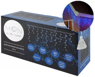 Sznury zakończone są innowacyjną złączką, która pozwala na łatwe i szybkie połączenie kilku zestawów lampek na jednym kablu zasilającym. Prosimy o zabezpieczenie kontrolera, wtyku oraz gniazda przed wilgocią, oraz wodą te elementy urządzenia nie są wodoodporne!Kurtyna świetlnaLampki występują w innowacyjnej formie zwisających sopli. W porównaniu do tradycyjnych sznurów diodowych lampki składają się ze zwisających segmentów o różnej długości. Dzięki temu zestaw idealnie sprawdza się jako oświetlenie balkonów i wszelkiego rodzaju balustrad. MarkaMOON in the roomModelML42ZasilanieAC 230 VDługość5 mIlość linii50Ilość diod250Barwa światłaNiebieskaWodoodpornośćTakZłącze do przedłużaniaTakTryby świeceniakombinacja fale sekwencja powolny blask pogoń zanik mruganie/błysk stałe światło