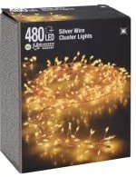 Łańcuch tzw. ryż 480 LED 4,8 m światło białe ciepłe Łańcuch świeci ładnym ciepłym światłem, świetnie wyglądającym w zieleni. Ledy są na skręcanym srebrnym druciku, co nadaje temu łańcuchowi klasy i elegancji. Drut można dowolnie modelować aby przystosować go do własnych potrzeb. Sprawdzi się w dekoracjach domowych, ogrodowych czy tarasowych.