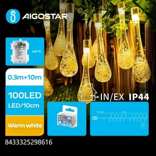 Lampki choinkowe Aigostar Lampki choinkowe krople deszczu na 3 baterie AA, Ciepła biel, 10m Lampki choinkowe krople deszczu na 3 baterie AA, Ciepła biel, 10m