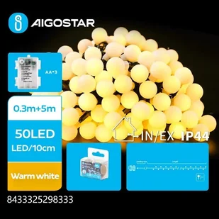 Lampki choinkowe Aigostar Lampki choinkowe mleczne żarówki na 3 baterie AA, Ciepła biel, 5m Taśma świetlna mleczne żarówki na 3 baterie AA, Ciepła biel, 5m