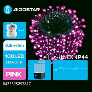 Lampki choinkowe Aigostar Lampki choinkowe na 3 baterie AA różowe Taśma świetlna płaska na 3 baterie AA