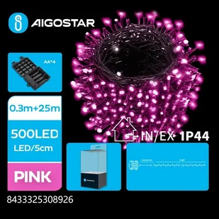 Lampki choinkowe Aigostar Lampki choinkowe na 4 baterie AA różowe Taśma świetlna płaska na 4 baterie AA