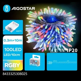 Aigostar - LED 100x, 10,3m, 3xAA, kolorowy łańcuch świąteczny