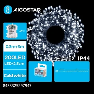 Lampki choinkowe Aigostar Lampki choinkowe ozdobne na 3 baterie AA, Zimna biel, 5m Płaska taśma świetlna fajerwerkowa na 3 baterie AA, Zimna biel, 5m