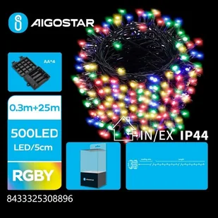 Lampki choinkowe Aigostar Lampki choinkowei sznurkowe na baterie 4AA, 0,3 m + 25 m RGB Płaskie lampki sznurkowe na baterie 4AA, 0,3 m + 25 m