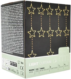 LAMPKI CHOINKOWE KURTYNA ŚWIETLNA 120x120 CM 235LED CIEPŁY BIAŁY GWIAZDKI