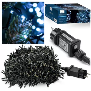 Lampki choinkowe przystosowane do ozdób zewnętrznych, wyposażone w 1000 diod LED. Zimna barwa lampek bardzo ładnie oświetla choinkę i efektownie komponuje się z tradycyjnymi ozdobami. Lampki posiadają zielony przewód, dzięki czemu jest mało widoczny na tle zielonych gałązek.