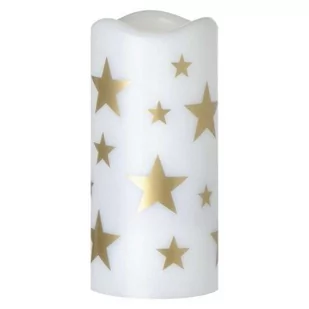 Ponadto meble i wyposażenie nie zostaną zanieczyszczone przez nieprzyjemne kropelki wosku i nieprzyjemne smugi dymuUNIKALNY DESIGN: Biały korpus świecy jest ozdobiony pięknymi gwiazdami w kolorze złotym, dzięki czemu świeca projektorowa LED zdobi wnętrze nawet po wyłączeniu. Dzięki klasie szczelności IP20 nadaje się do użytku w pomieszczeniach - salonie, sypialni, kuchni lub na zadaszonych obszarach zewnętrznych - balkonie, tarasieOŚWIETLENIE DEKORACYJNE: Nasza świeca projektorowa z efektami specjalnymi nadaje się do dekoracji wnętrz na różne specjalne okazje, takie jak zaręczyny, wesela, kolacje we dwoje lub inne uroczystości. Idealna na Boże Narodzenie lub Nowy RokOSZCZĘDNOŚĆ I DŁUGA TRWAŁOŚĆ: