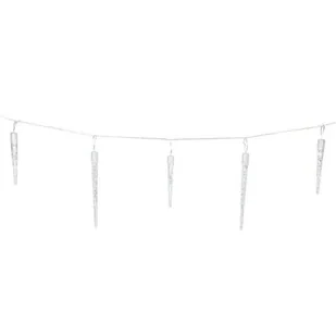 Sople lampki dekoracyjne ciepłe białe 72 LED zasilanie sieciowo Urokliwe lampki ogrodowe w kształcie białych przeźroczystych sopli, które rozświetlone światłem LED o ciepłej, białej barwie, idealnie wpisują się w zimowy nastrój. Idealny produkt do dekoracji okien, fasad budynków, wybranych miejsc w ogrodzie oraz w domu. Programator pozwala na ustawienie 8 sposobów świecenia, a timer na ustawienie czasu w jakim mają działać albo nie. Specyfikacja: ilość sopli: 24, w tym 12 dużych ( 4 LED), i 12 małych (2 LED) długość sopli: 20 i 30 cm, kolor światła: ciepły biały, odległość miedzy soplami: $338 30 cm, długość odcinka świecącego: 690 cm, programator: 8 funkcji, 5 m przewodu doprowadzającego, Timer 6/18 (wł/wył), klasa ochrony IP44 (zewnętrzne/wewnętrzne)