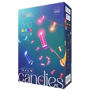 Inteligentne lampki dekoracyjne Twinkly Strings USB-C (Candies) 200 LED RGB, świece, zielony przewód, 12 m