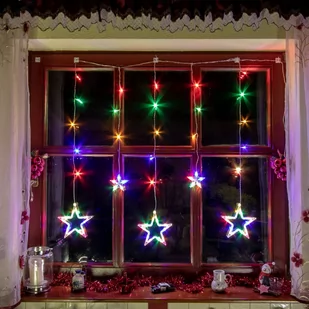 Piękny dekoracyjny łańcuszek, który przyciągnie uwagę w oknie, nad kominkiem, na balkonie, tarasie lub w ogrodzie. Na łańcuchu naprzemienne pasma zakończone dużą lub małą gwiazdką.