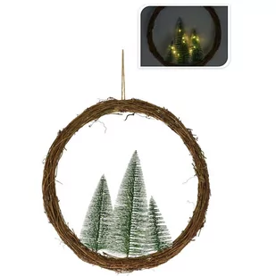 Dekoracje świąteczne wprowadzają do pomieszczenia magiczną atmosferę, pełną ciepła i cudownych wspomnień. Ten rattanowy stroik będzie doskonałym uzupełnieniem każdego wnętrza. Okrągły wianek zawiesić można na drzwiach, by już od progu roznosiła się cudowna, świąteczna aura. Obręcz stroika wykonana z rattanu, ozdobiona jest trzema choinkami, które pokryte są śniegiem. Całość prezentuje się niezwykle stylowo i doskonale komponuje się z klimatem świątecznym.