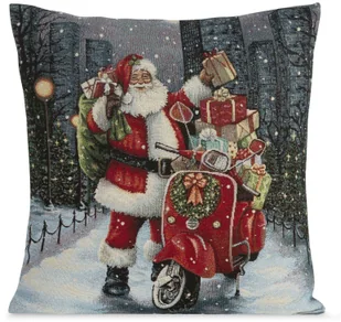Eurofirany Poszewka świąteczna 45x45 Mikołaj Skuter szara czerwiona gobelinowa 6128