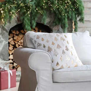 Poszewka dekoracyjna futerkowa świąteczne choinki 45 x 45 cm biało - złota