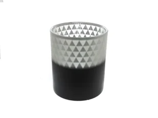 Szklany lampion na świeczkę srebrno-czarny. Idealna dekoracja np. na stół na Boże Narodzenie. Wymiary: 8,8 cm x 10 cm.