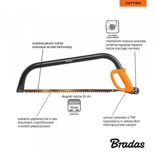 Piła kabłąkowa regulowany napinacz 24" 61cm $1221$1222$1223$1224$1225 Piła kabłąkowa dwustronna, jest wykorzystywana do cięcia świeżego i suchego drewna i materiałów drewnopochodnych. Nowy model perfekcyjnie zbalansowany pod względem ciężaru i długości, posiada rączkę wykonaną z TPR wygodną w uchwycie i funkcjonalną pod kątem wymiany ostrza jak i osłonięcia dłoni przed urazami. Idealna do różnorodnych zadań związanych z pracą w tartaku, stolarni czy budowie. $1226 Cechy produktu: $1227 ostrze wykonane ze stali hartowanej SK5, $1228 wyposażona w dwustronne ostrze tnące, $1229 zęby piły wyprofilowane w dwóch płaszczyznach, $1230ostrze piły tnie w obu kierunkach $1231 długość ząbkowego ostrza 61cm, $1232 rączka wykonana z TPR, $1233 waga: