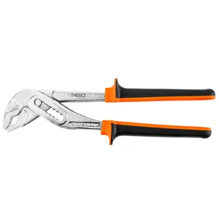 Szczypce do rur 250 mm, zakres 10-45 mm, 02-401 marki NEO to wysokiej jakości narzędzie z trwałej stali chromowo-wanadowej, przeznaczone m. in. dla hydraulików do pracy z rurami. Posiada 7 skali przegubu przestawnego oraz rozwartość szczęk na poziomie od 10 do maksymalnie 45 mm. Ergonomiczne uchwyty pokryte są antypoślizgowym materiałem, zapewniającym optymalny komfort użytkowania. Szczypce gwarantują trwałość oraz przydatność na lata.