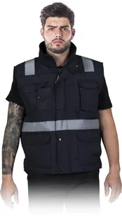 Bezrękawnik ocieplany z dużą ilością kieszeni, tkany.