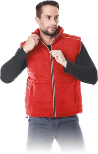 - Bezrękawnik zapewniający ochronę przed chłodem, dzięki podwójnemu systemowi ocieplenia, tkany.